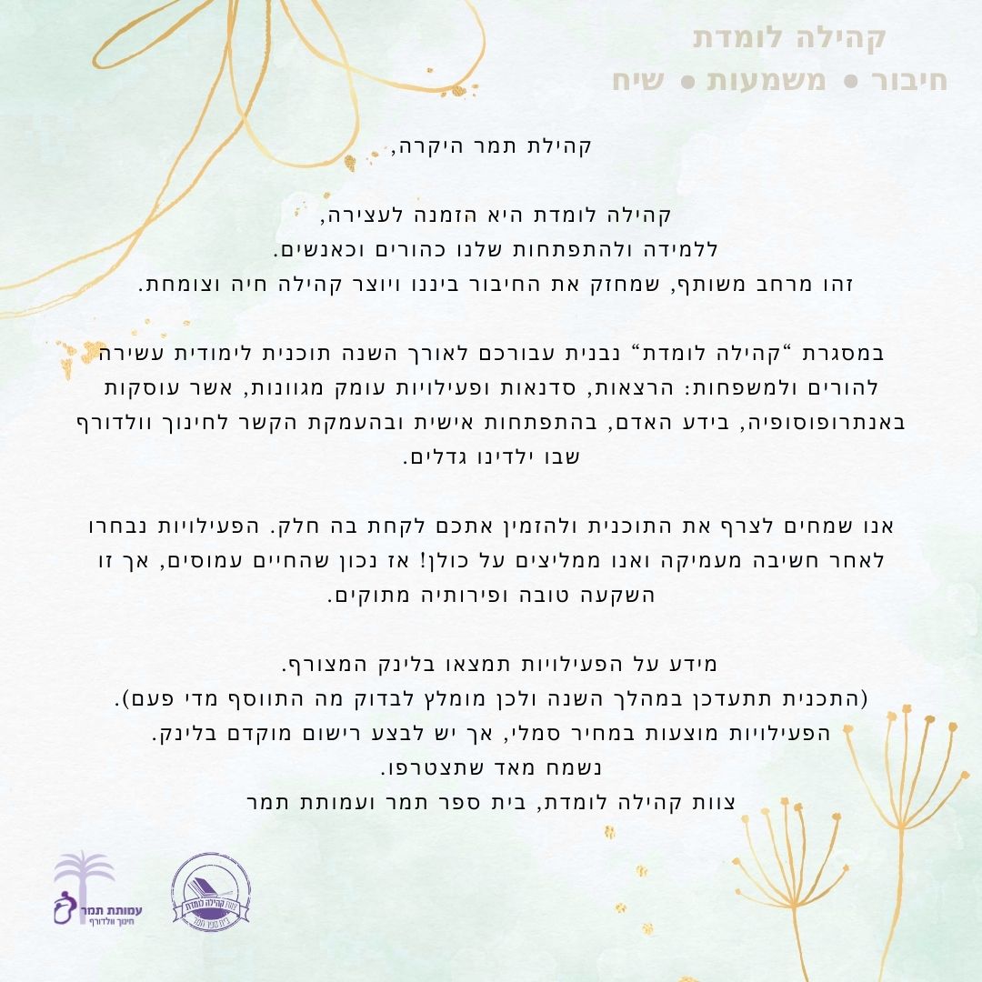 קהילה דיאלוג בקהילה – בית ספר תמר ערב שולחנות עגולים | דצמבר 2025 לערב זה הוזמנו קרא עוד » דצמבר 21, 2025 אין תגובות
