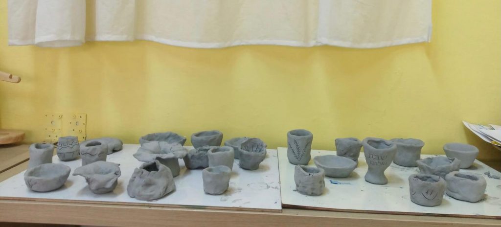 גם בבית הספר שלנו ישנם בעלי מלאכה מוכשרים ומקצועיים, לשמחתנו אילת נוי, המורה הנפלאה לקרמיקה וקדרות אירחה את שתי הכיתות בסדנה שלה והילדים התענגו לראות ובהמשך גם לחוש, איך גוש החימר נהפך בידיהם לכלים שימושיים ויפהפיים, תודה לאילת!
