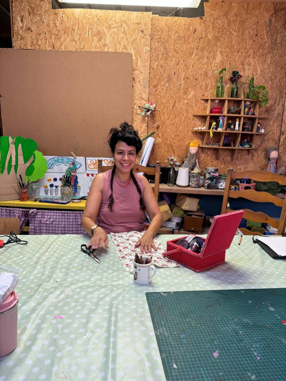 למזלי החלל הזה הוא מושלם לעבודה שהיא לפעמים קצת מלכלכת, היא משתמשת בדברים ממוחזרים ועובדת עם מה שזמין.