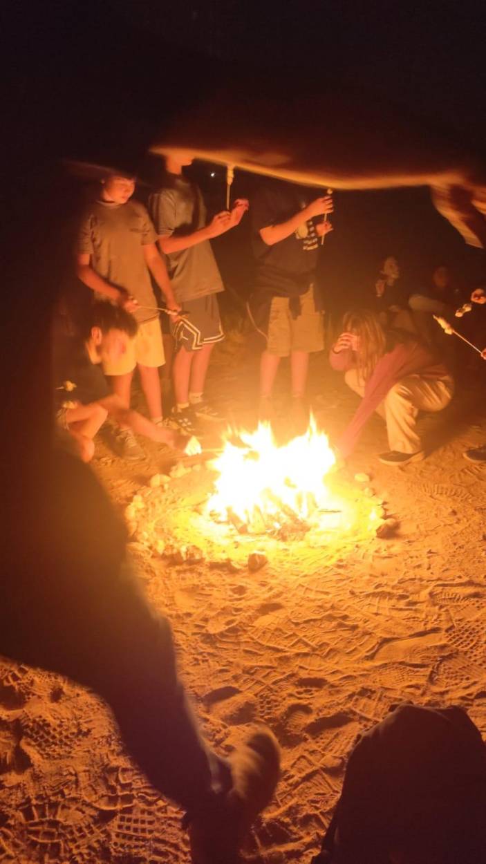 משם המשכנו ל"בית חינוך בערבה" למפגש מיוחד במינו. המחנך טל וילדי הכיתה קיבלו אותנו, באמת, במאור פנים ופתחו בפנינו את כיתותיהם והמרחב בלב חפץ…הזדמנות לראות ש"גם שם לומדים על מהפכות וגם שם יש פסיפס וברכת בוקר ובכלל אנחנו די דומים…" לאחר בישולים וארוחת ערב. יצאנו רגלית לאגם ספיר שם גם התחממנו לאור מדורה וגם צפינו בירח המלא!!! ובכוכב שבתאי עם טלסקופים מקצועיים. "דברים שרואים משם לא רואים מכאן…"