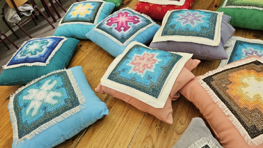 בכיתה ז', כתרגיל ראשון – תופרים את תיקי המלאכה לכיתות א' (של השנה הבאה), חומר הגלם – בדים של מצעים שיצאו משימוש.