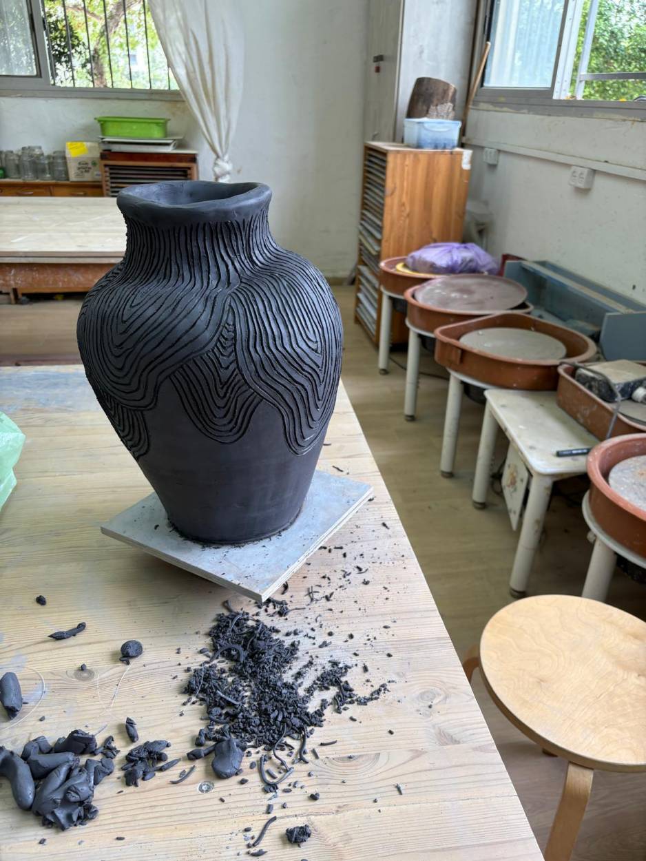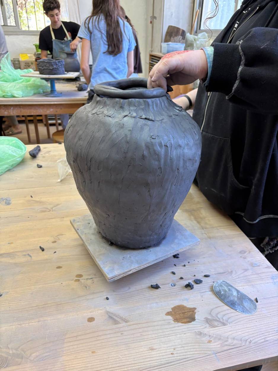 מה שמרגש אותי בעבודה עם הילדים, זה קודם כל ההנאה מהחומר והיכולת שלהם לעבוד בתהליך יחסית איטי, בלי תוצאות מהירות ועם הרבה חוסר ודאות. זה מרגש לראות את ההתמודדות שלהם עם הדבר הזה. במיוחד כשמדובר בילדים שחיים בתרבות בה הכל מהיר וזמין – פתאום הם במצב של השתהות ועמלנות בה הם יוצרים והחומר מערים קושי, לפעמים הוא מתייבש, לפעמים הוא רטוב. לפעמים החומר הוא לא בדיוק מה שרציתי שיהיה. תלמידי כיתה ז' מתחילים תהליך שמעמיק בכיתה ח' ומרגש לראות את היכולת, הביטחון והמיומנות שהם רוכשים מתפתחים – מקערה לכדי כד סגור, ממיכל ליצירה גדולה וסגורה.